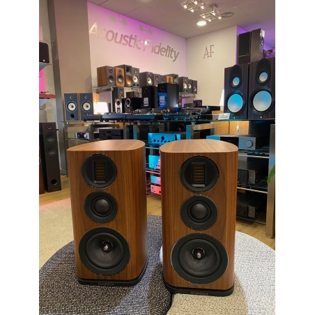Coppia diffusori da stand 3 vie bass-reflex 120 W - Impedenza 4 Ohm (compatibile 8 Ohm) 1 Woofer da 150 mm cono in Kevlar 1 Midrange a cupola morbida da 50 mm 1 Tweeter AMT da 80 mm - Sensibilità 90 dB Dimensioni (L x A x P): 250 x 455 x 340 mm Peso (cadauno): 13,4 kg